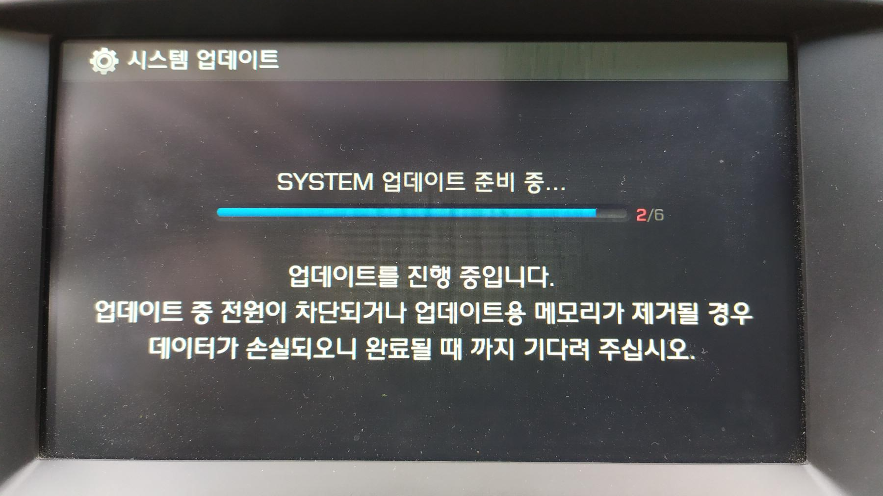 (업데이트는 재부팅이 많다는 내용이 있어서 혹시나 하여 처음부터 엔진 시동을 걸어두고 작업 하였다.)