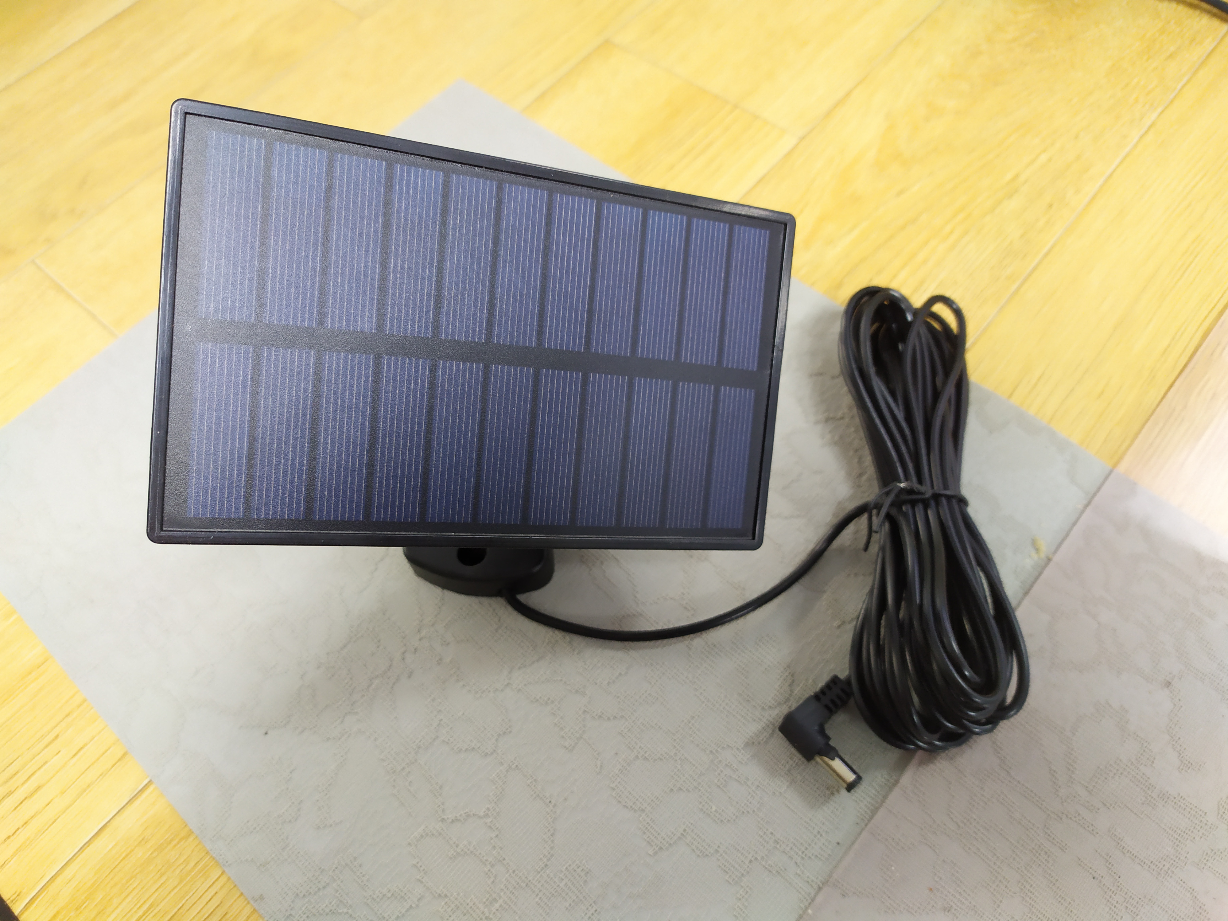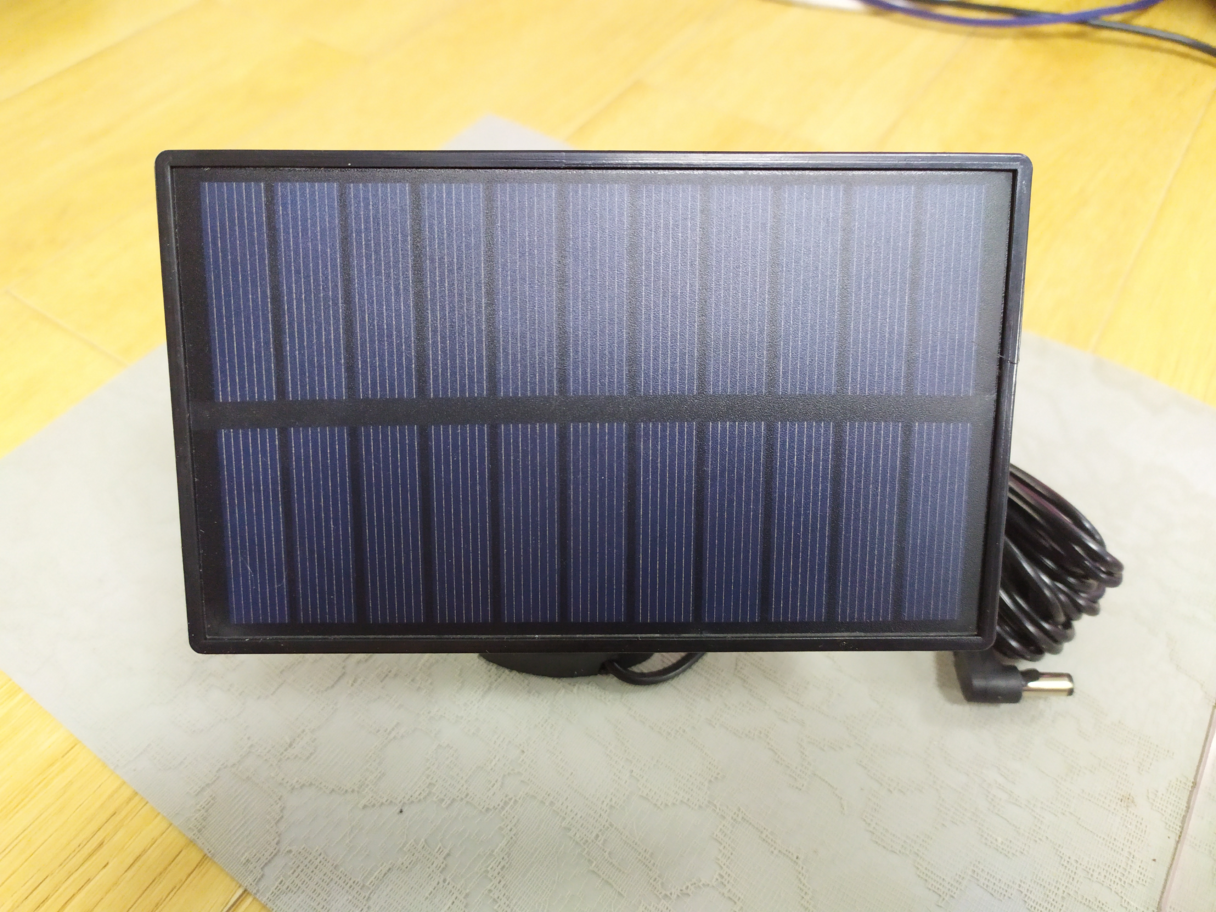 [집광판의 5.5미리 단자가 본체에 연결되어 있고 비충전 상태의 야간(빛이 없는)]
