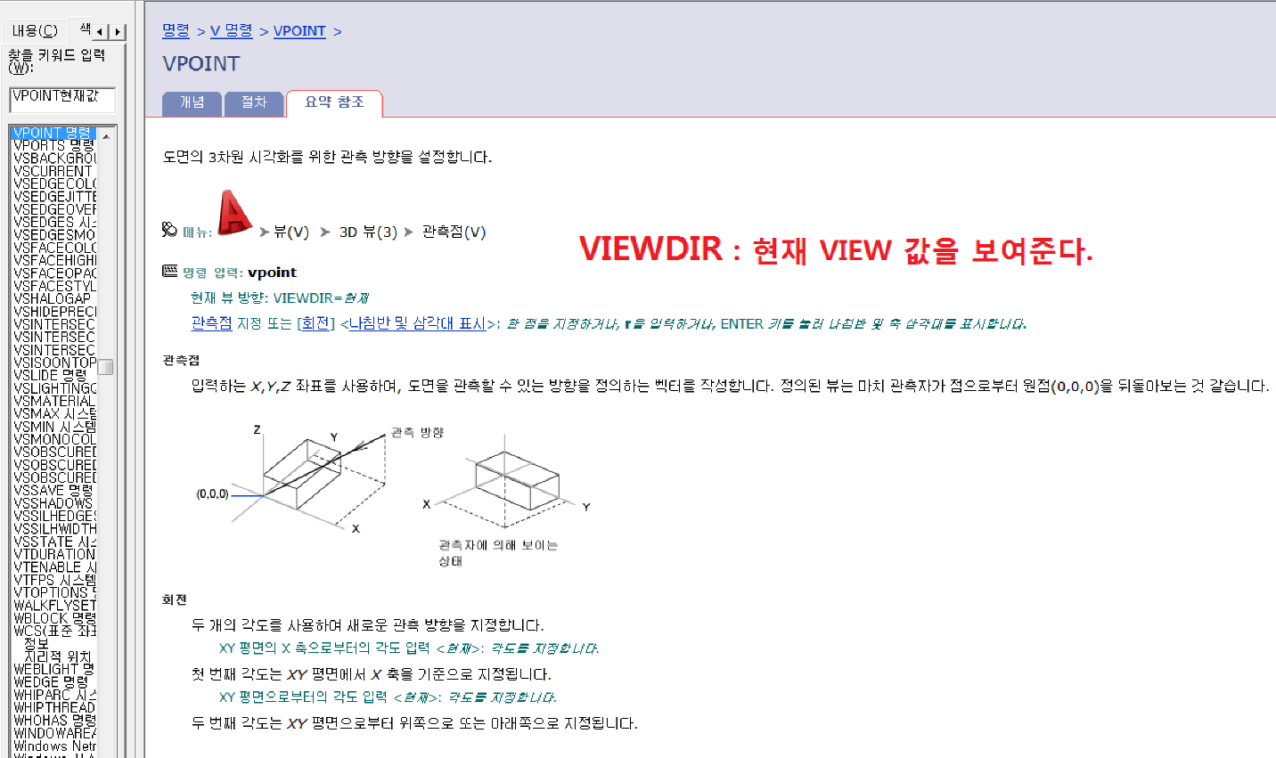 Viewdir (Autocad에서 3d 현재 View 좌표값을 보여준다)