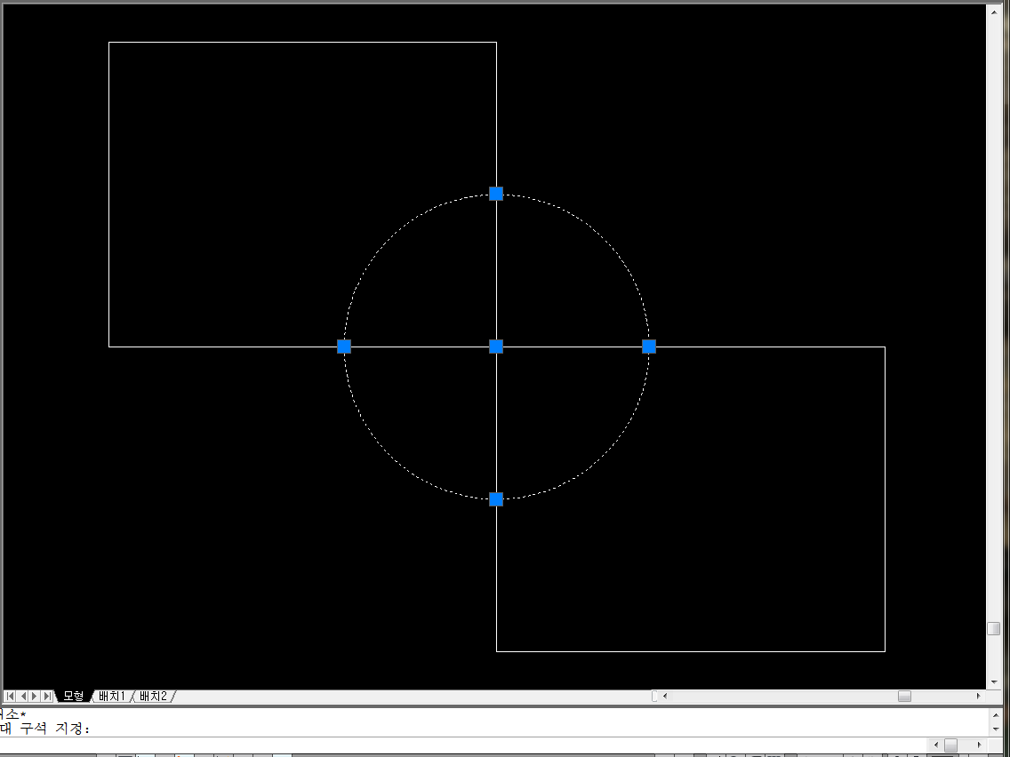 참고: AutoCAD 2015 이전 버전에서는 객체가 선택되면 파선으로 표시됩니다.